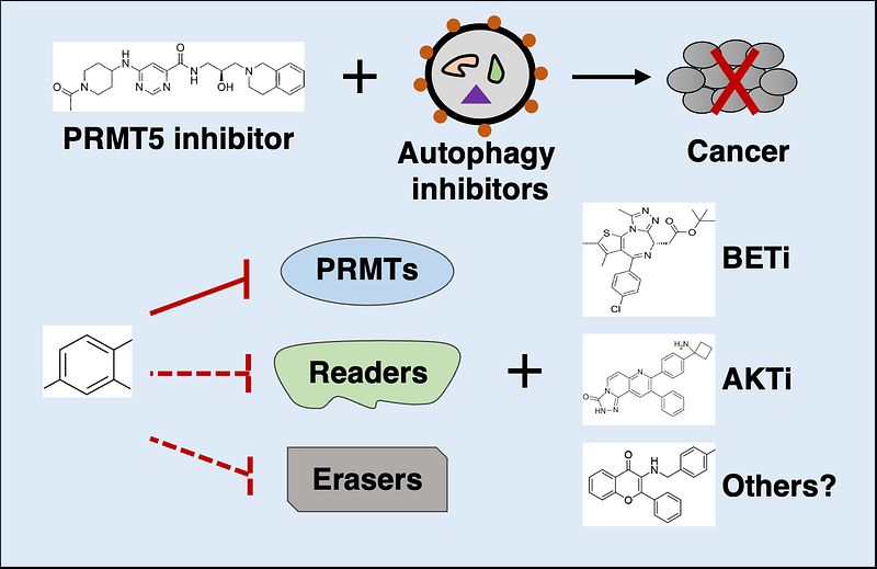 The critical roles of PRMTs in cancers have made them as attractive therapeutic targets. Recent efforts have led to developing numerous inhibitors of PRMTs with potent and selective activity. The significant anti-tumor effect in preclinical studies has provided a strong rationale for clinically evaluating the inhibitors of PRMT5 and type I PRMTs in cancer patients. Despite these promising progresses have been made, targeting PRMTs is still in its infancy. Key future directions include identifying biomarkers for prediction of the responsiveness, improving the selectivity of PRMT inhibitors, and exploring combination therapies. For example, our study demonstrated that combinational treatment of PRMT5 plus autophagy inhibitors has a synergistic effect in triple negative breast cancer (Brobbey et al. Scientific Reports, 2023).
